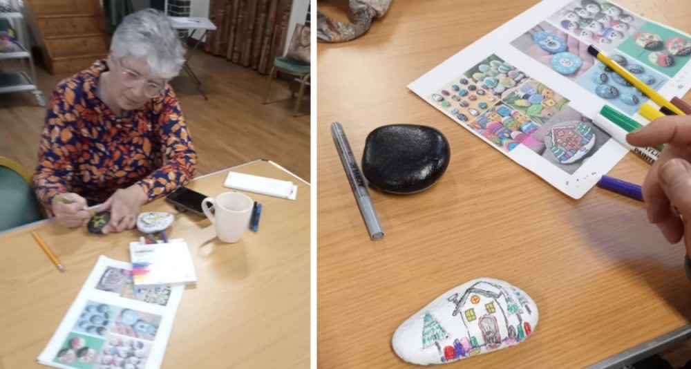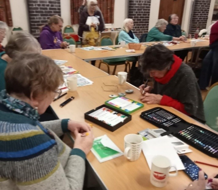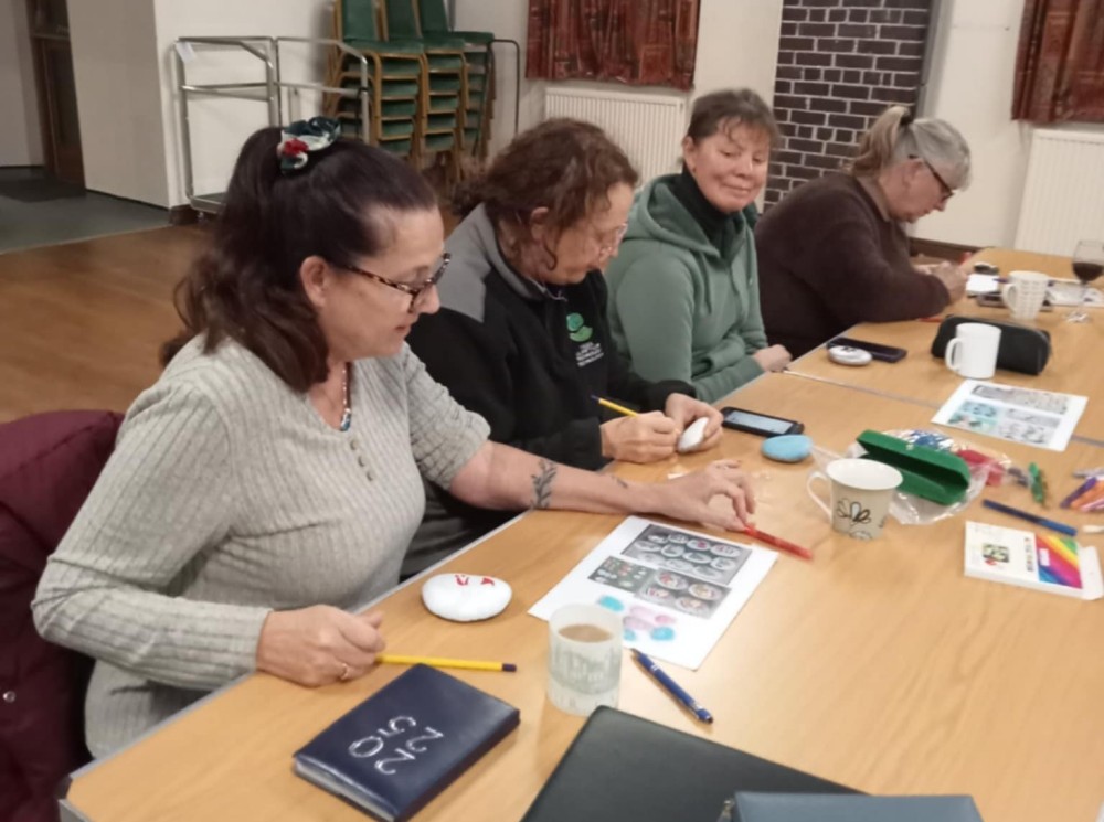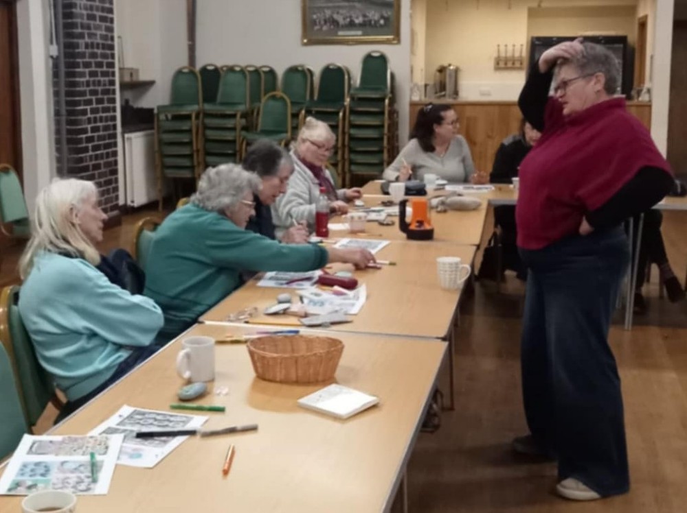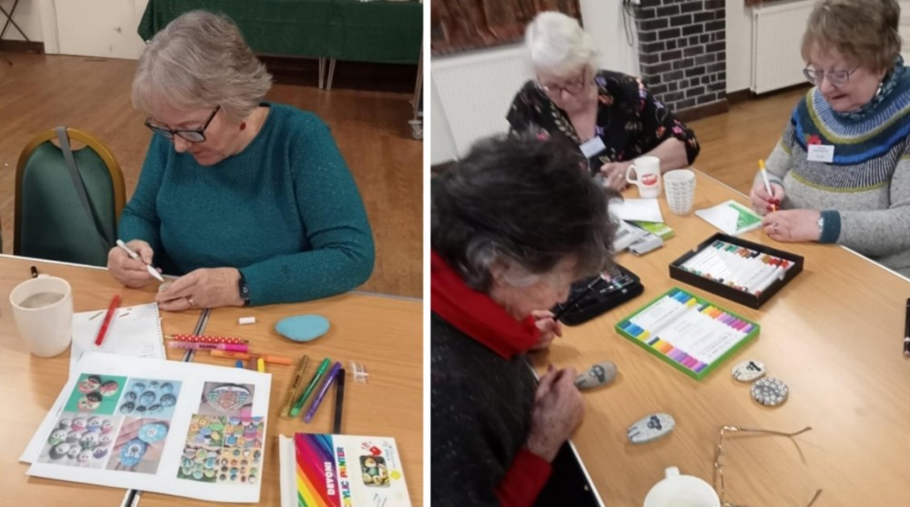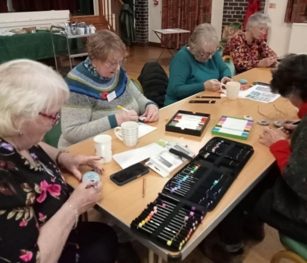 Members then selected naked pebbles and created their own masterpieces using special pens. Local artists, and Berwyn Belle members, Maureen Clark, Anne Hill and Pam Parnell, organised the evening and gave help and advice where needed, as a heavy hush of concentration settled on the hall.