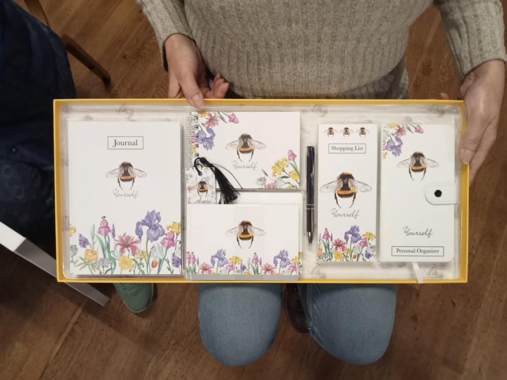 This beautiful bee themed stationery set was donated by Sheila and won by Julia.